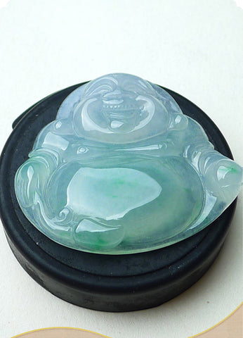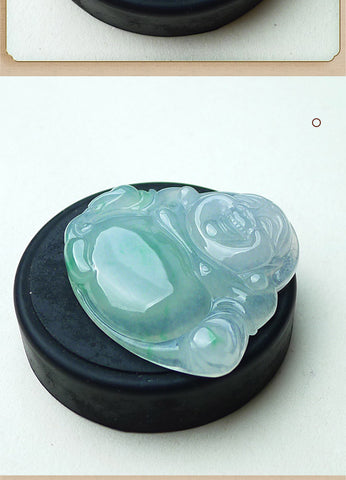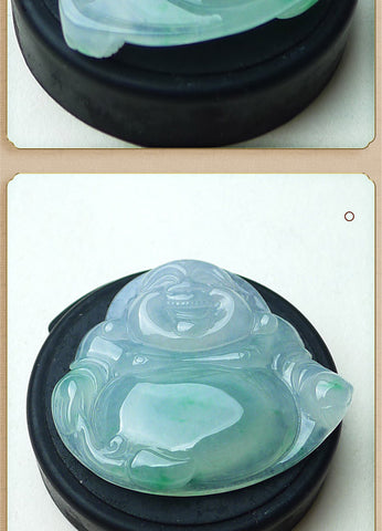 Natural A-goods jadeite exquisite water moistening ice floating Yang green smiling Buddha (Buddha)